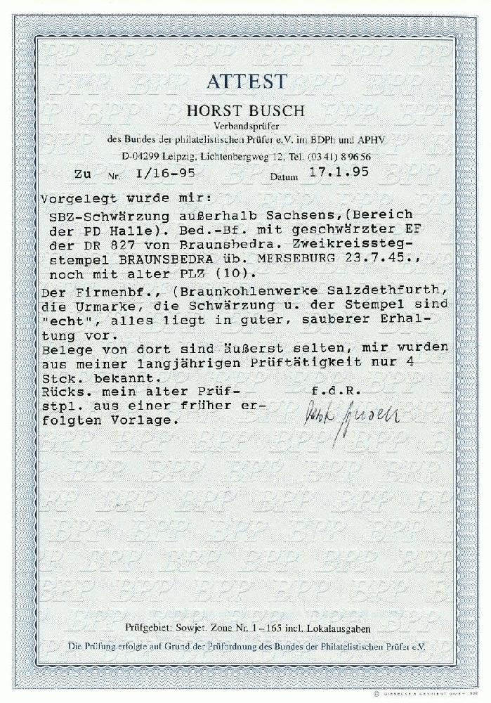 | Prüfer: | Busch, Horst (BPP (Bund Philatelistischer Prüfer)) |