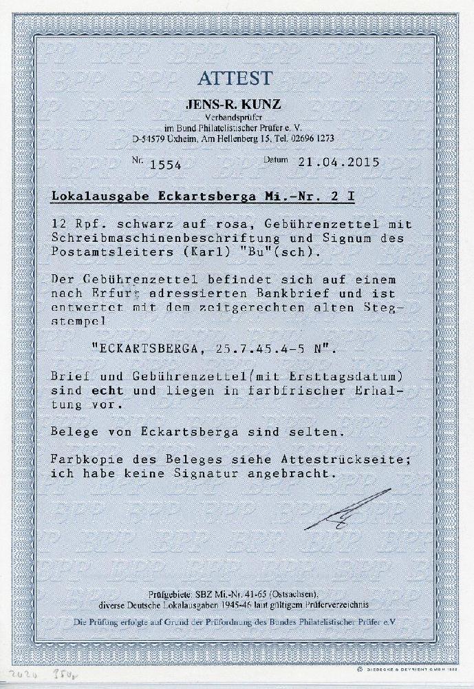 | Prüfgebiet: | Deutsche Lokalausgaben 1945 Eckartsberga |