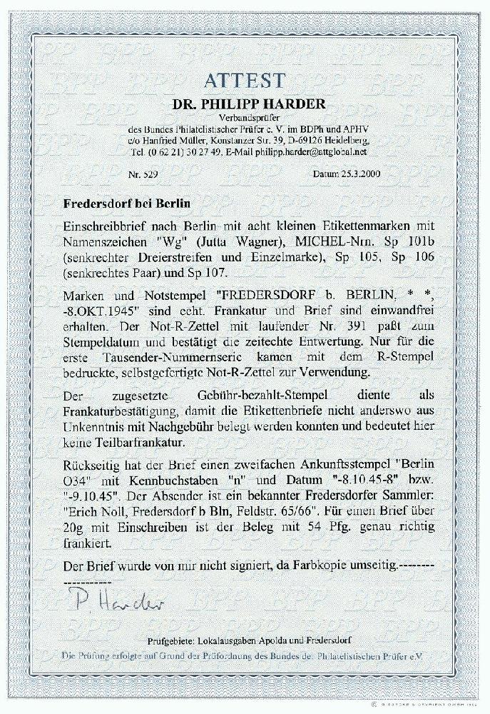 | Prüfgebiet: | Deutsche Lokalausgaben 1945 Fredersdorf |