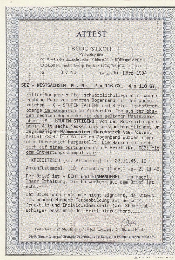 | Prüfgebiet: | Alliierte Besetzung SBZ West-Sachsen |