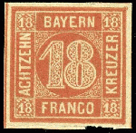 | Zusatzinformationen und Suchstichworte: | Dr. Reinhard Fischer 190. Auktion 27. - 28. Januar 2023 Los 144 Altdeutschland Bayern 18 Kr lebhaftorangerot tadellos postfrisch und noch völlig unsigniert, unten außerhalb des Markenbildes wie üblich etwas bayernbrüchig, neuer Fotobefund Sem BPP: "postfrisch, einwandfrei", Mi. 400.- Ausruf 200,00 EUR |