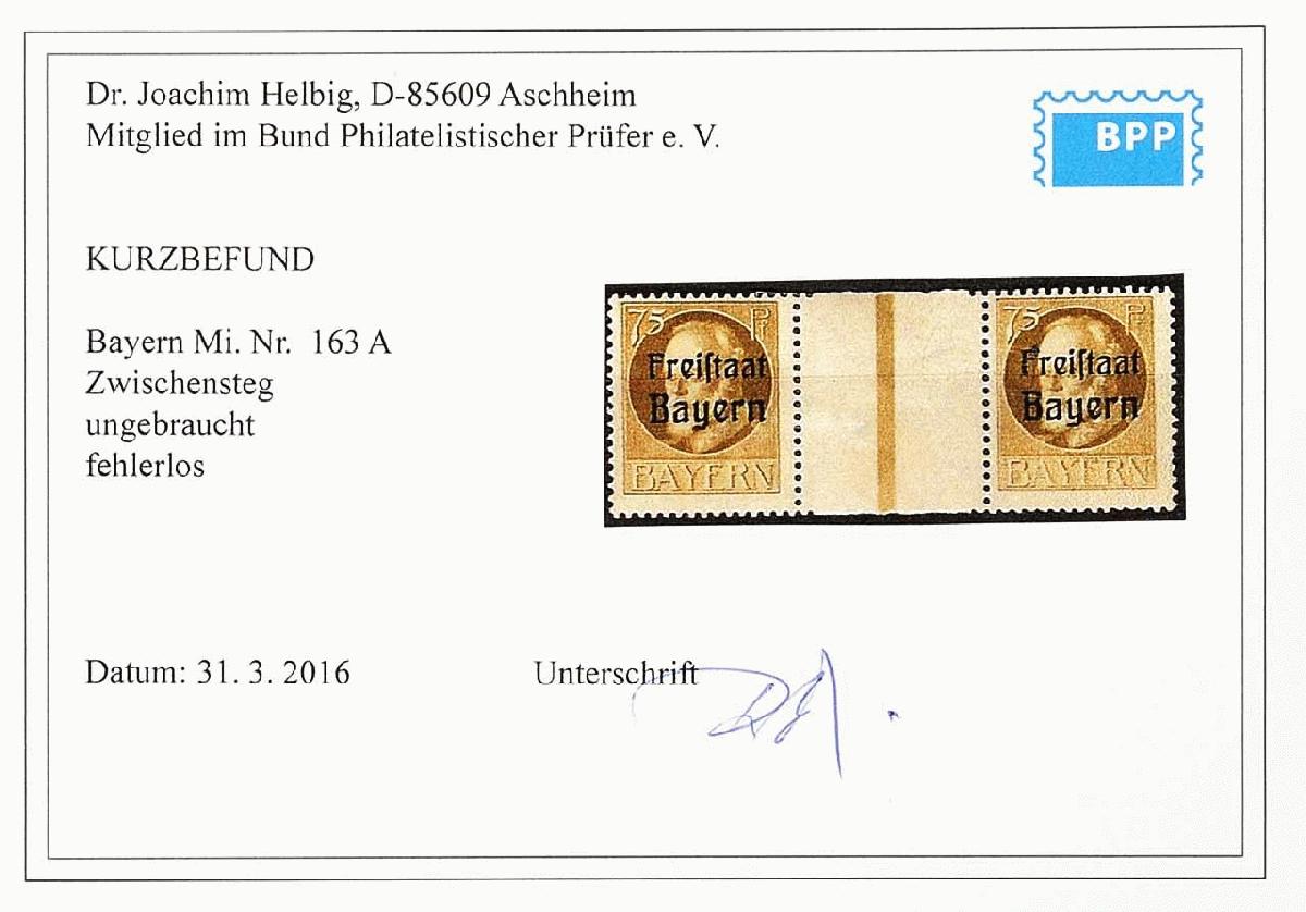 | Zusatzinformationen und Suchstichworte: | Dr. Reinhard Fischer 190. Auktion 27. - 28. Januar 2023 Los 170 Altdeutschland Bayern 75 Pfg., waagrechtes Paar mit Zwischensteg, ungebraucht, Fotobefund Helbig BPP Ausruf 30,00 EUR |
