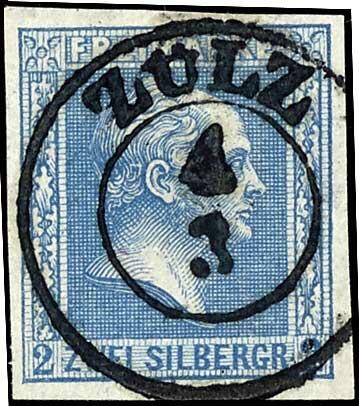 | Zusatzinformationen und Suchstichworte: | Dr. Reinhard Fischer 190. Auktion 27. - 28. Januar 2023 Los 590 Altdeutschland Preussen 2 Sgr. blau, gegitterter Grund, Plattenfehler II "verkürztes F" (Feld 129), vollrandiges und farbfrisches Luxusstück, entwertet mit besserem Orts-K2 "ZÜLZ 4 3" (Reg.-Bez. Oppeln), gepr. Kastaun BPP und Fotobefund Brettl AIEP (2014): "in feinster, tadelloser Erhaltung." Ausruf 150,00 EUR |
