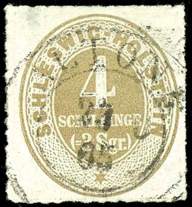 | Zusatzinformationen und Suchstichworte: | Dr. Reinhard Fischer 190. Auktion 27. - 28. Januar 2023 Los 934 Altdeutschland Schleswig Holstein 4 Schillinge hellockerbraun, entwertet "ALTONA 23.9.65", am Oberrand kleine Dünnheit - ansonsten tadellose und sehr ansprechende Gesamterhaltung, gepr. Brettl und Fotoattest Moeller BPP (2017), Mi. 1.600.- - in echt gestempelter Erhaltung eine sehr seltene Marke! Ausruf 250,00 EUR |