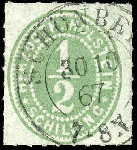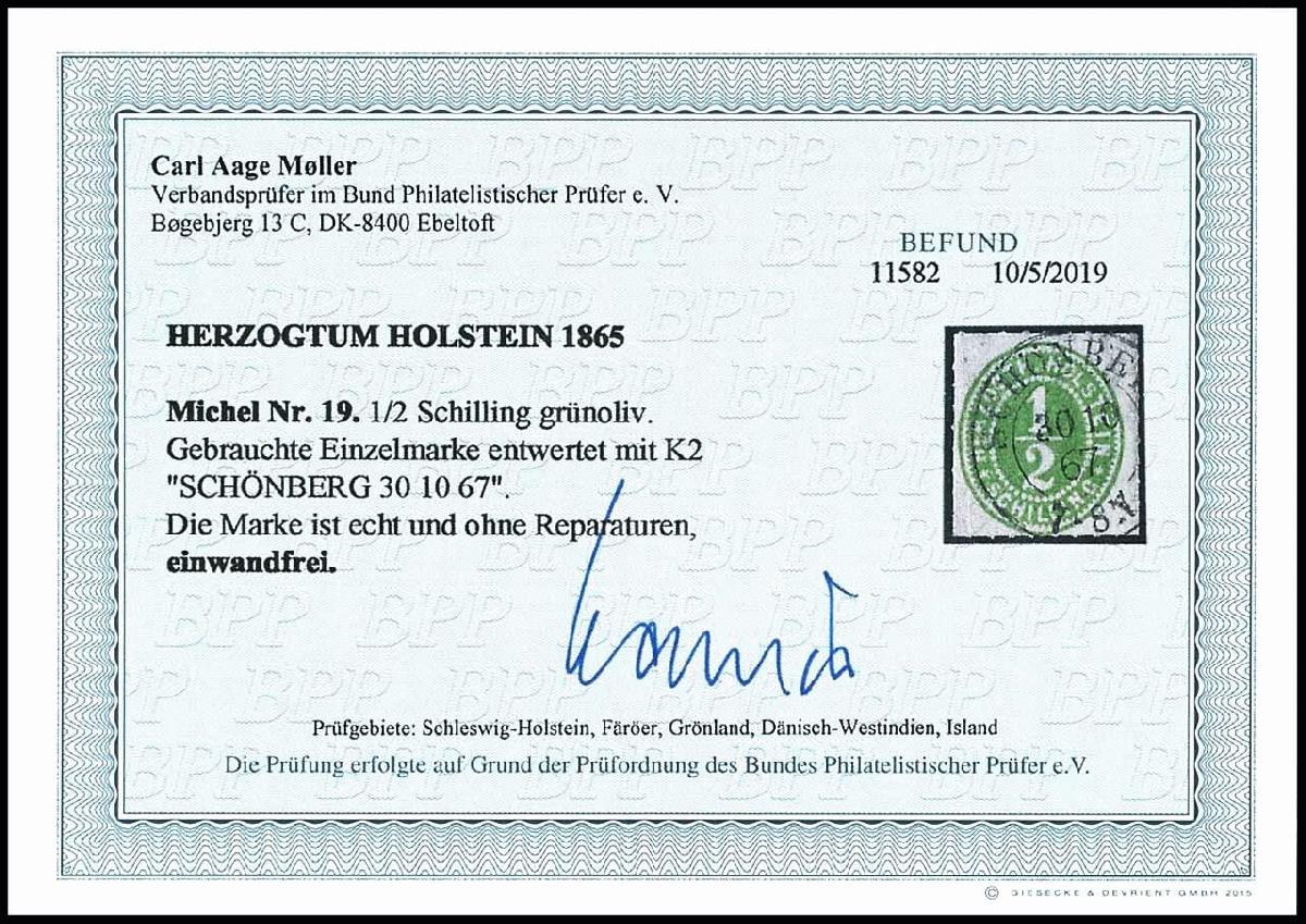 | Zusatzinformationen und Suchstichworte: | Dr. Reinhard Fischer 190. Auktion 27. - 28. Januar 2023 Los 941 Altdeutschland Schleswig Holstein 1/2 Schilling grünoliv, farbfrisches und gut durchstochenes Kabinettstück, zentrisch entwertet mit K2 "SCHÖNBERG 30 10 67", Fotobefund Carl Aage Moeller BPP: "einwandfrei", Mi. 120.- Ausruf 40,00 EUR |