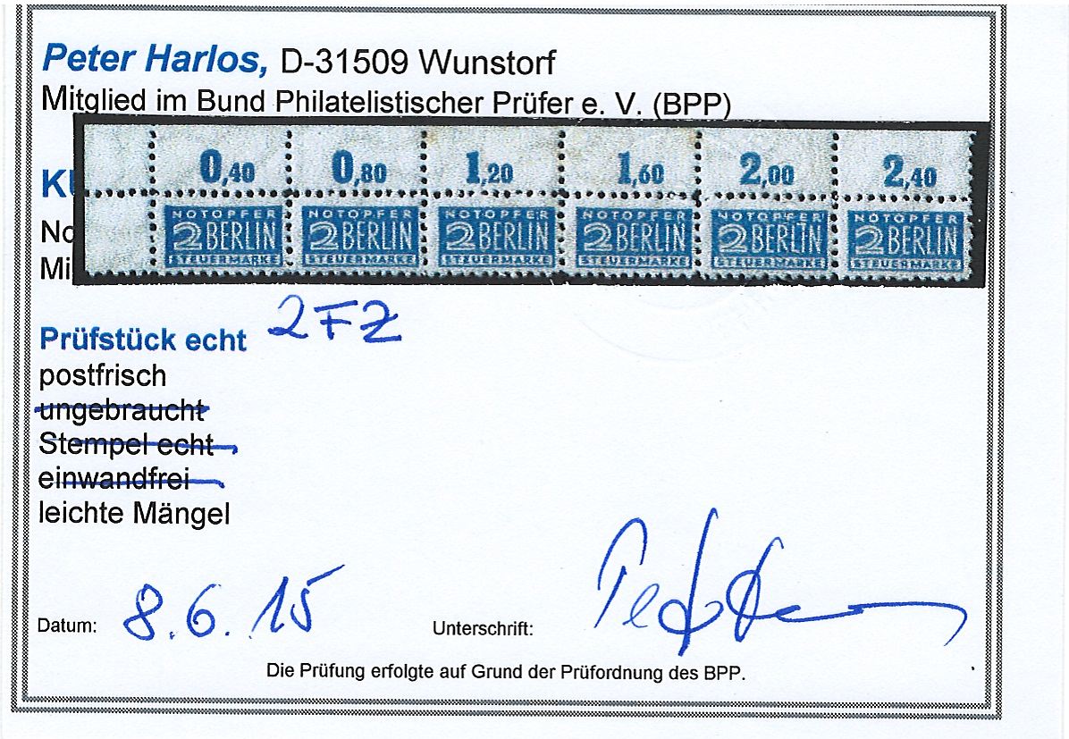 | Prüfgebiet: | Alliierte Besetzung Notopfer- und Wohnungsbaumarken |