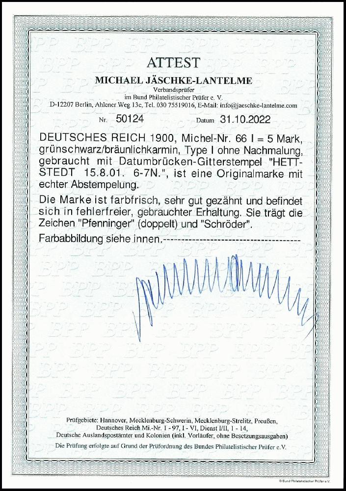 | Prüfgebiet: | Deutsches Reich 1871 - 1918 (Mi-Nr. 1 - 106) |
