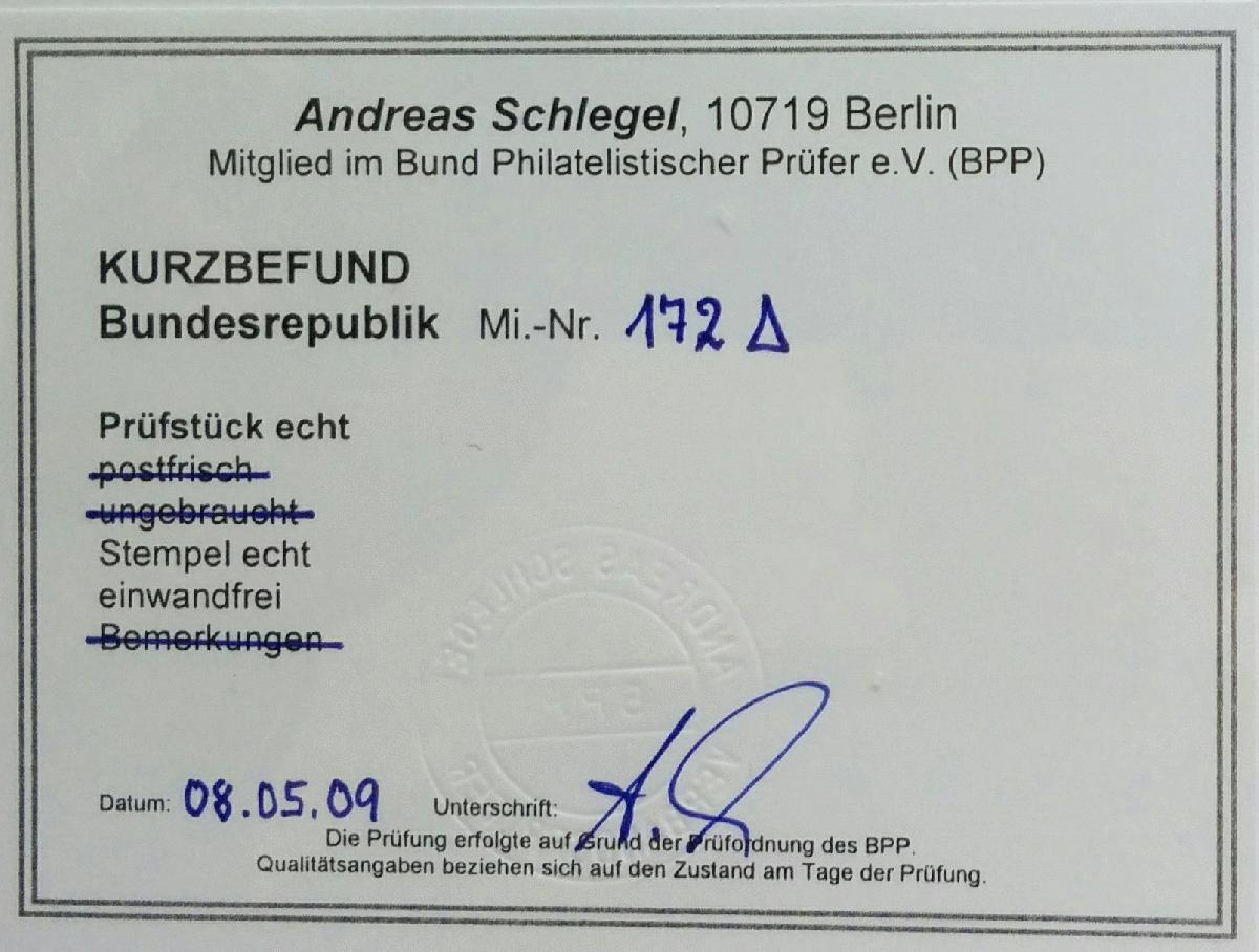 | Prüfer: | Schlegel, Andreas (BPP (Bund Philatelistischer Prüfer)) |