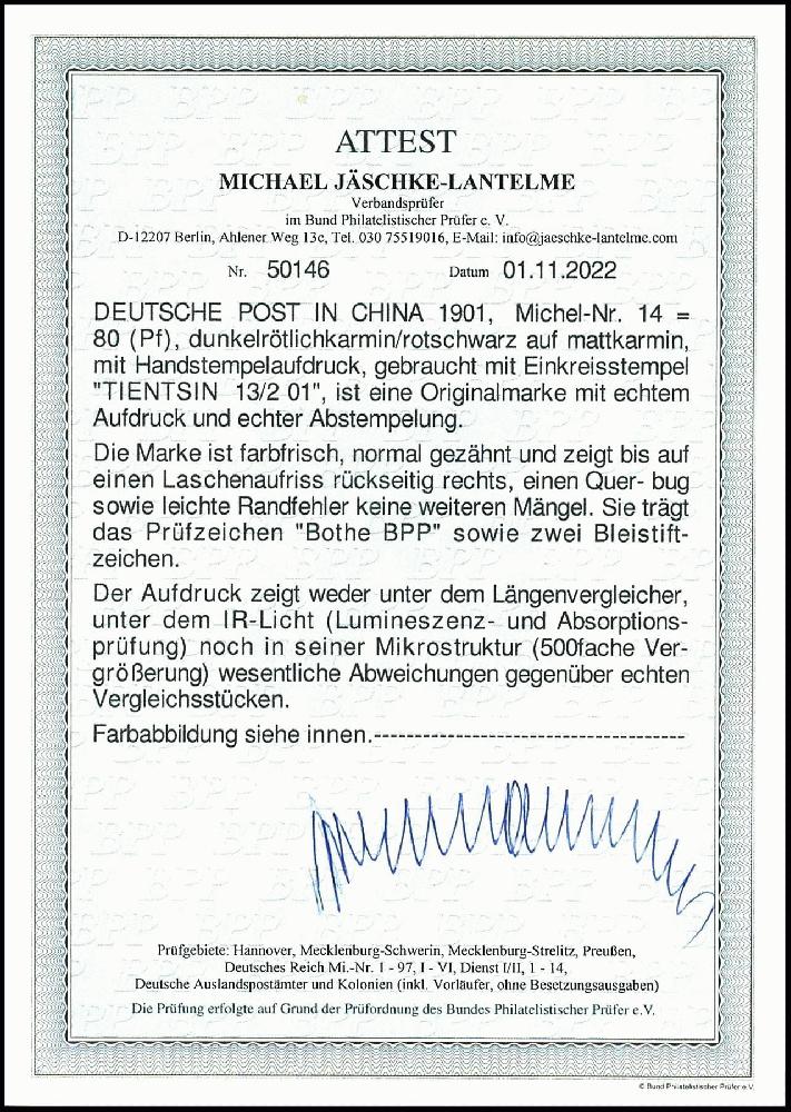 | Prüfer: | Jäschke-Lantelme, Michael (BPP (Bund Philatelistischer Prüfer)) |
