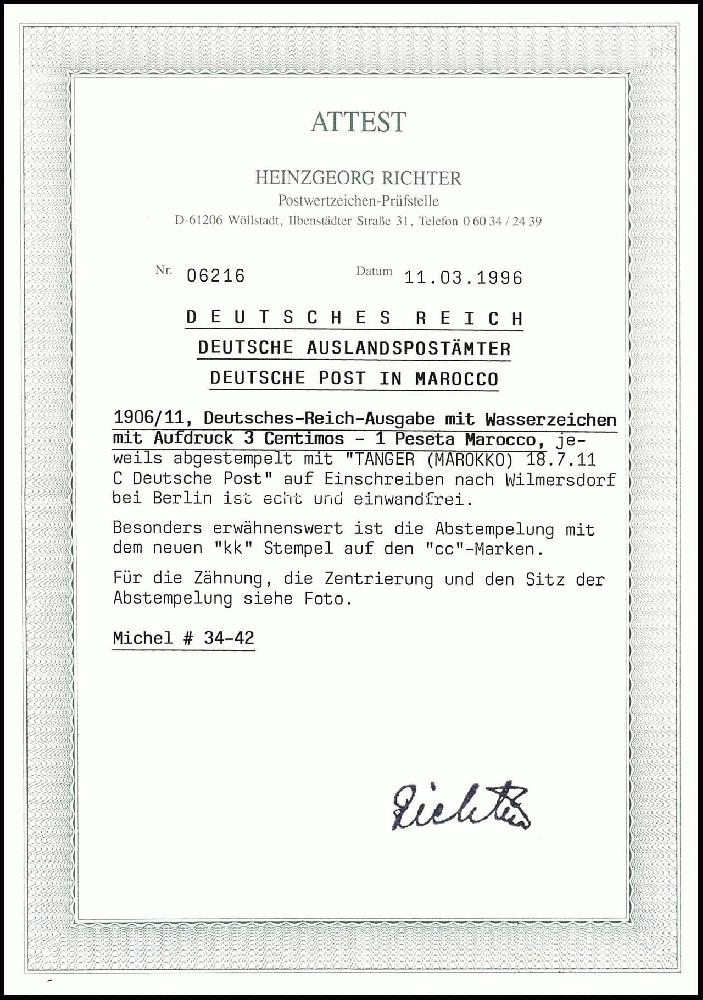 | Prüfgebiet: | Deutsche Auslandspostämter Marokko |
