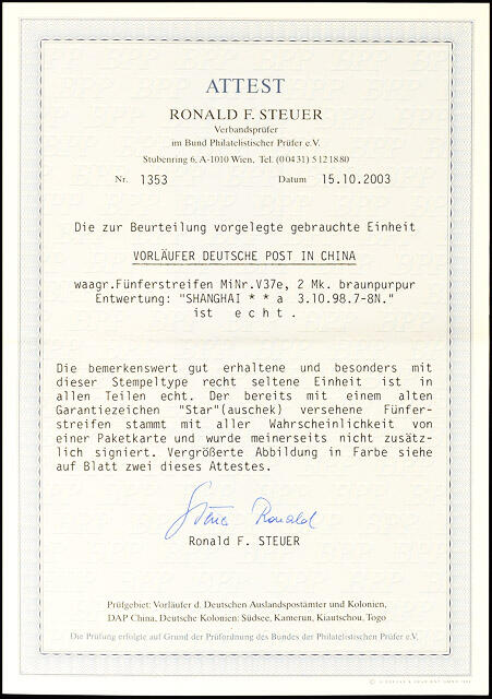 | Prüfer: | Steuer, Ronald F. (BPP (Bund Philatelistischer Prüfer)) |