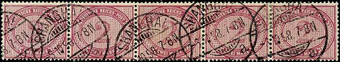 | Zusatzinformationen und Suchstichworte: | Dr. Reinhard Fischer 190. Auktion 27. - 28. Januar 2023 Los 2421 Deutsche Auslandspost China, Vorläufer 2 Mark Ziffer, waagerechter 5er-Streifen tadellos gestempelt "SHANGHAI * * a 3.10.98.7-8N.", Fotoattest Ronald F. Steuer BPP: "Die bemerkenswert gut erhaltene und besonders mit dieser Stempeltype recht seltene Einheit ist in allen Teilen echt." Mi. 8-fach = 1.200.- Ausruf 150,00 EUR |