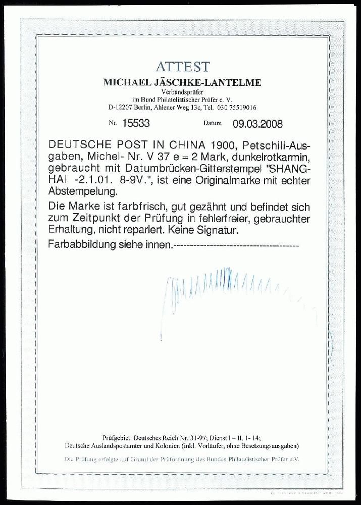 | Prüfgebiet: | Deutsche Auslandspostämter China Petschili-Ausgaben |
