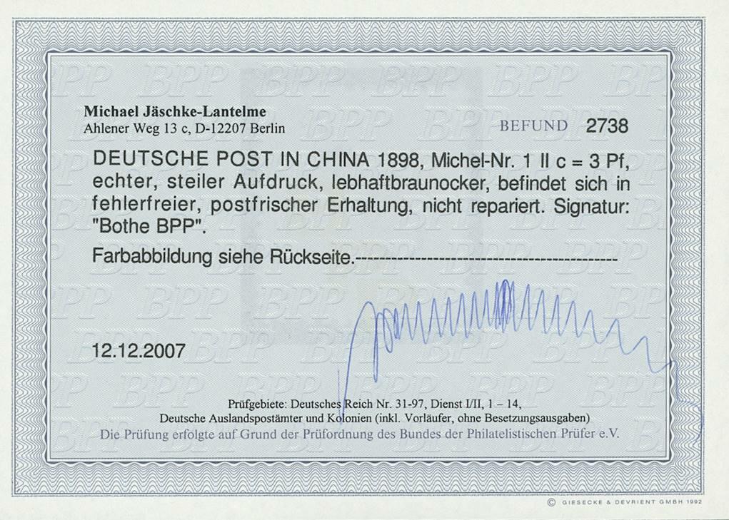 | Prüfer: | Jäschke-Lantelme, Michael (BPP (Bund Philatelistischer Prüfer)) |