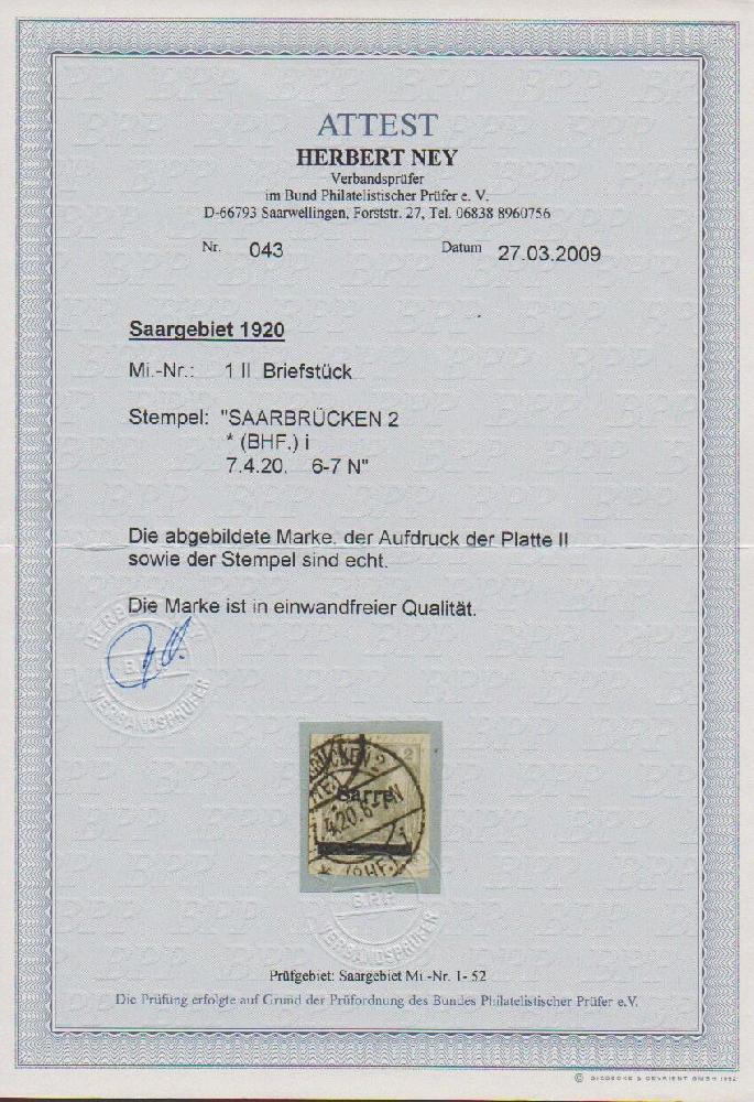 | Prüfgebiet: | Saargebiet (Mi-Nr. 1 - 205) |