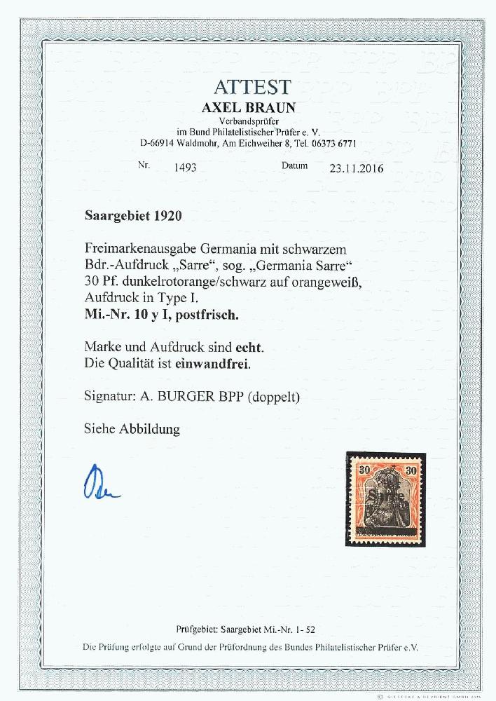 | Prüfgebiet: | Saargebiet (Mi-Nr. 1 - 205) |