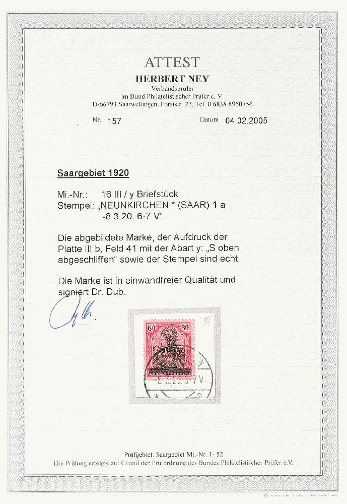 | Prüfgebiet: | Saargebiet (Mi-Nr. 1 - 205) |