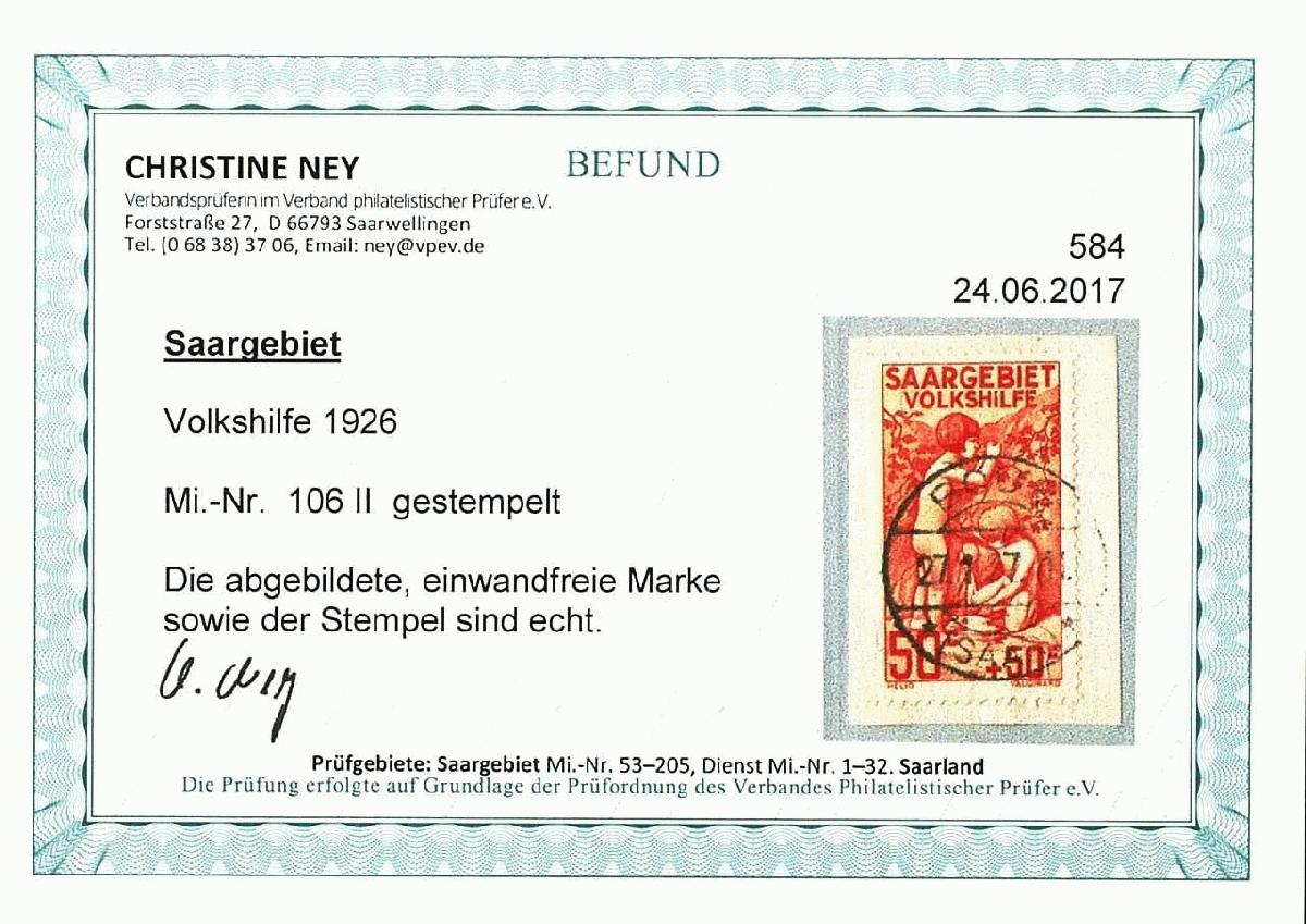| Prüfgebiet: | Saargebiet (Mi-Nr. 1 - 205) |