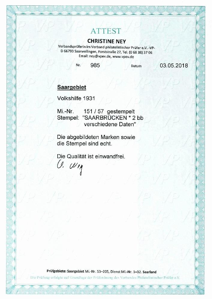 | Prüfgebiet: | Saargebiet (Mi-Nr. 1 - 205) |