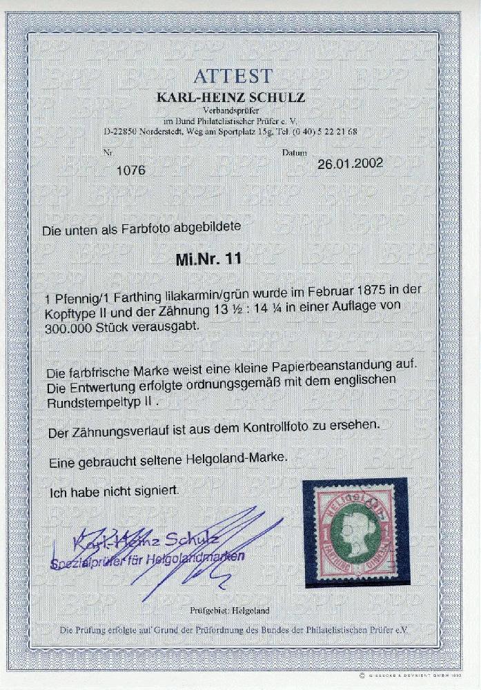 | Prüfer: | Schulz, Karl-Heinz (BPP (Bund Philatelistischer Prüfer)) |