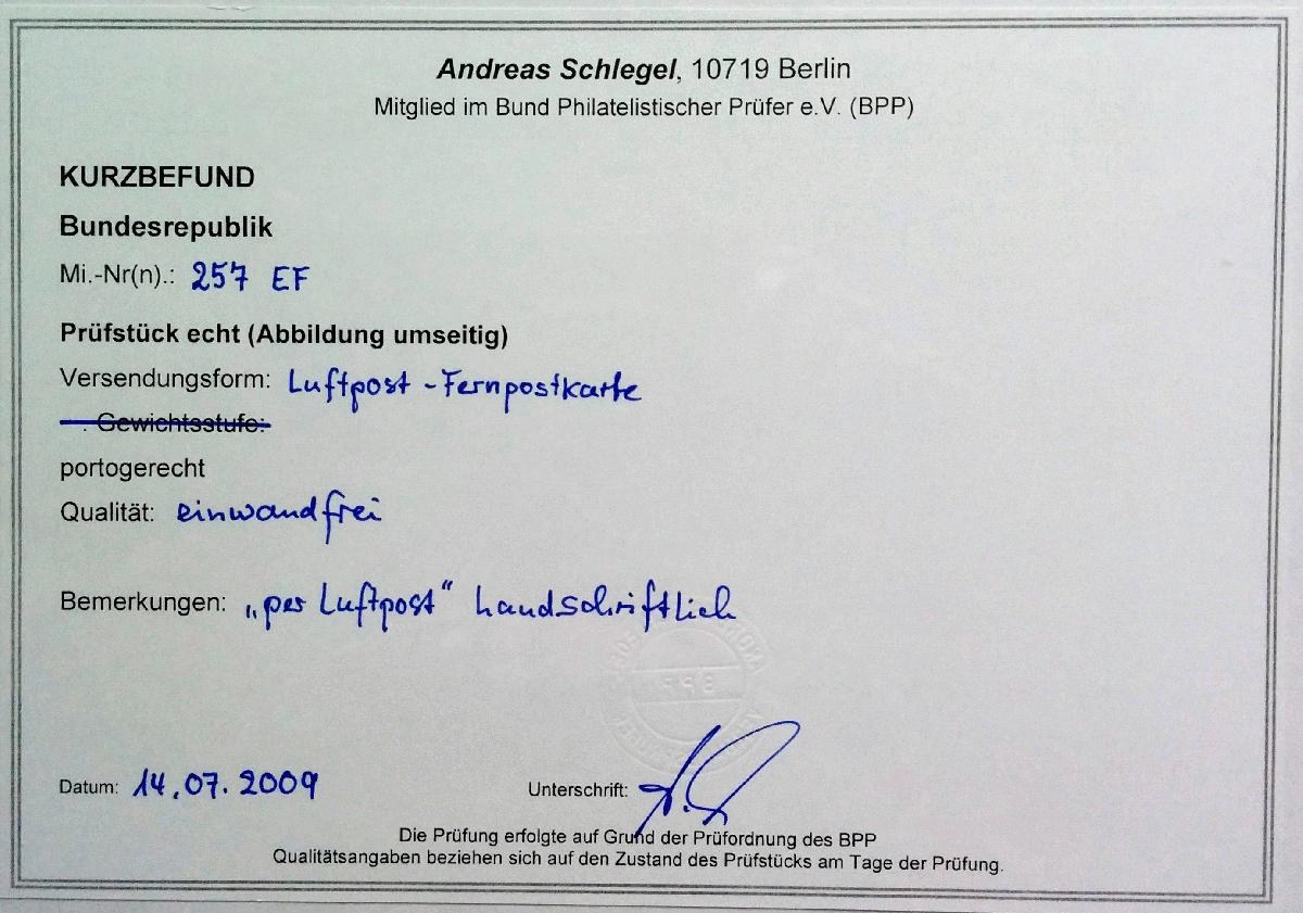 | Prüfer: | Schlegel, Andreas (BPP (Bund Philatelistischer Prüfer)) |