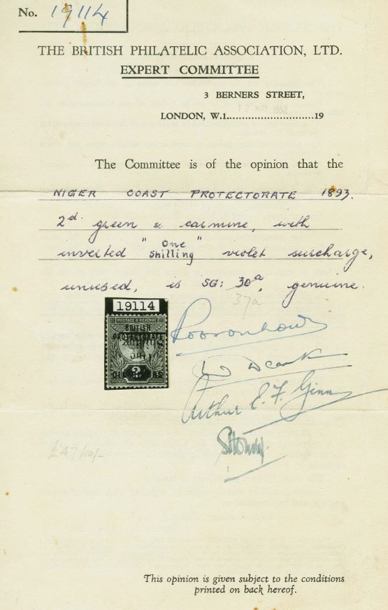 | Prüfer: | BPA, The British Philatelic Association Limit (Prüferkommission) |