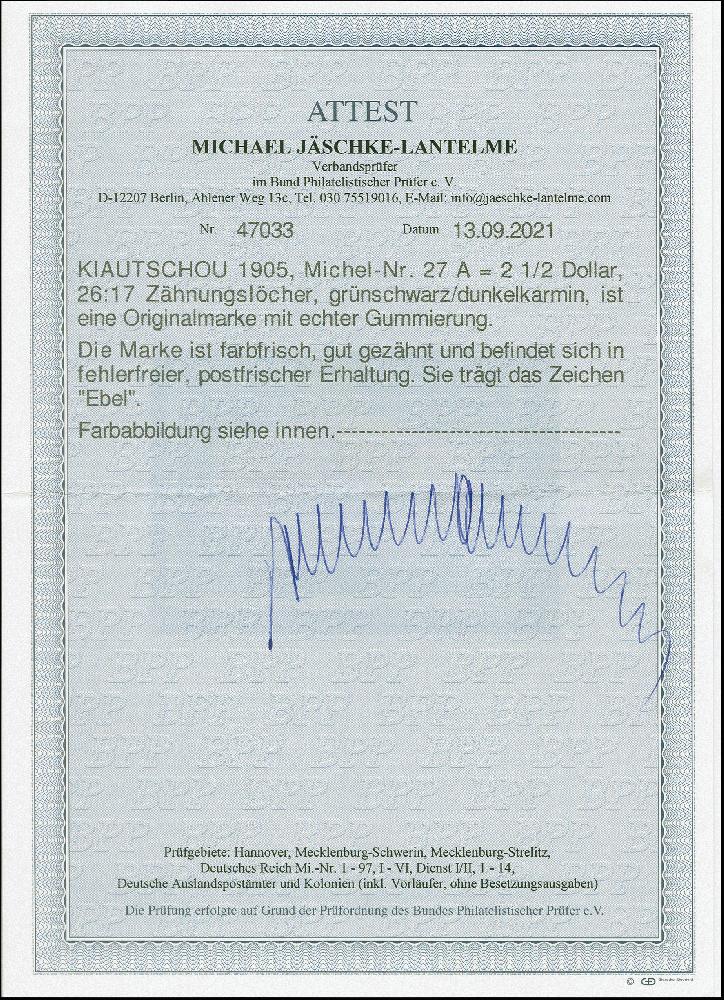 | Prüfer: | Jäschke-Lantelme, Michael (BPP (Bund Philatelistischer Prüfer)) |