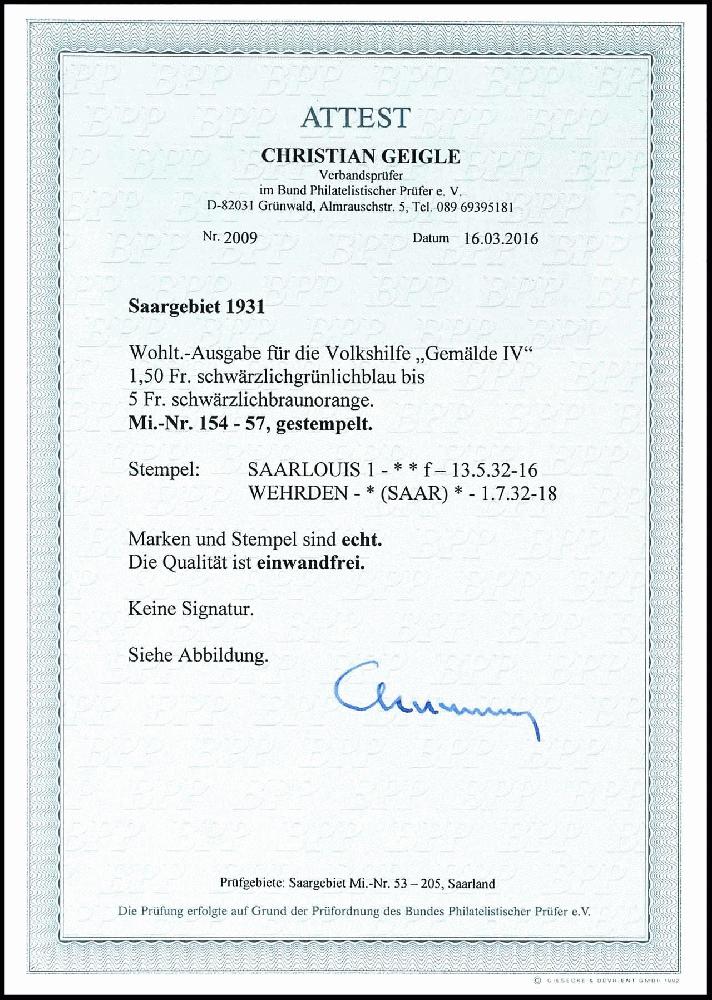 | Prüfgebiet: | Saargebiet (Mi-Nr. 1 - 205) |