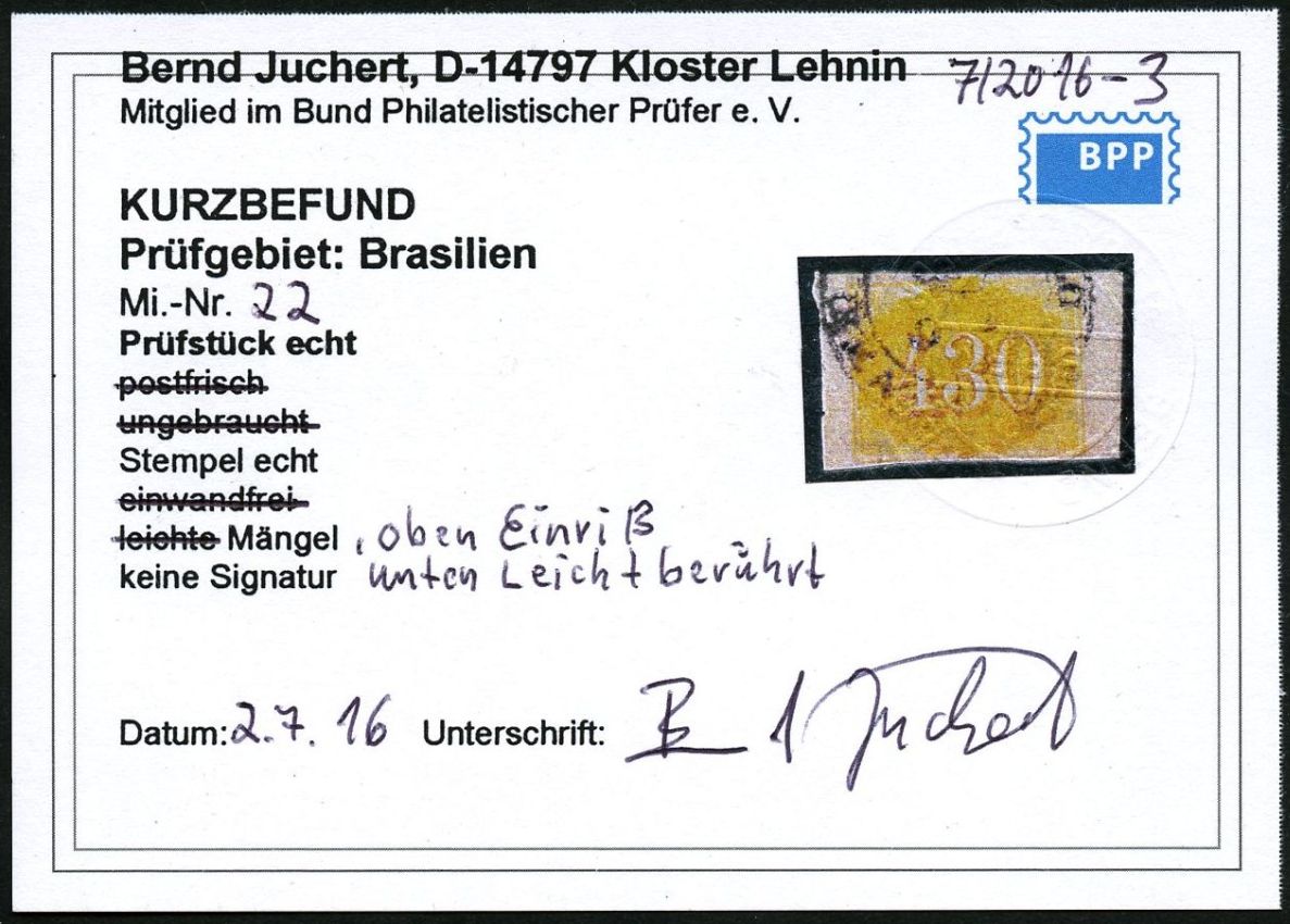 | Prüfer: | Juchert, Bernd (BPP (Bund Philatelistischer Prüfer)) |
