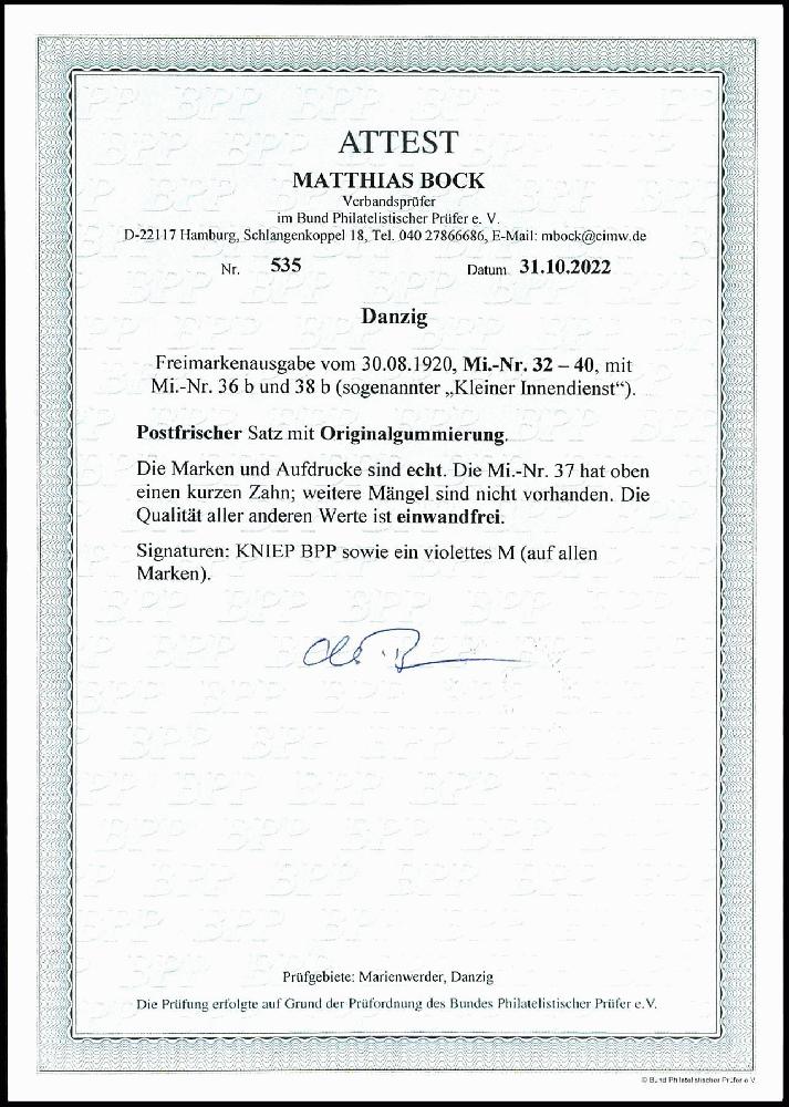 | Prüfer: | Bock, Matthias (BPP (Bund Philatelistischer Prüfer)) |