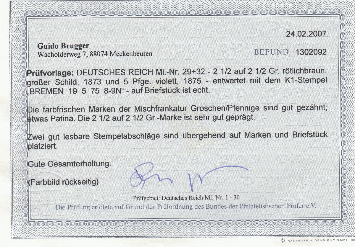 | Prüfer: | Brugger, Guido (BPP (Bund Philatelistischer Prüfer)) |