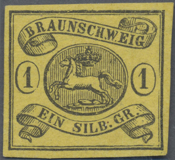 | Zusatzinformationen und Suchstichworte: | Christoph Gärtner 55. Auktion 20. - 24. Februar 2023 Los 5059 D Altdeutschland Braunschweig 1861, 1 Sgr. schwarz auf gelbem Papier, ungebraucht, breite Ränder an allen Seiten in feiner, farbfrischer, einwandfreier Erhaltung mit Originalgummierung. Attest Lange BPP: "Ungebraucht eine nicht häufige Marke" Ausruf 1.000,00 EUR |