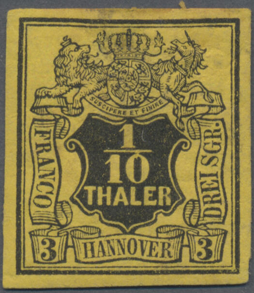 | Zusatzinformationen und Suchstichworte: | Christoph Gärtner 55. Auktion 20. - 24. Februar 2023 Los 5079 D Altdeutschland Hannover 1851, 1/10 Th./3 Sgr. schwarz auf dunkelrötlichgelb, farbintensives, allseits vollrandiges Exemplar, ungebraucht mit Originalgummi und Falzrest/Anhaftungen, einige dünne Stellen, unsigniert. Fotoattest Jäschke-Lantelme BPP. Mi. 900,- €+. Eine in ungebrauchter Erhaltung seltene Marke! Ausruf 160,00 EUR |