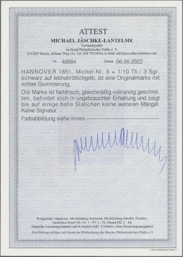 | Prüfer: | Jäschke-Lantelme, Michael (BPP (Bund Philatelistischer Prüfer)) |