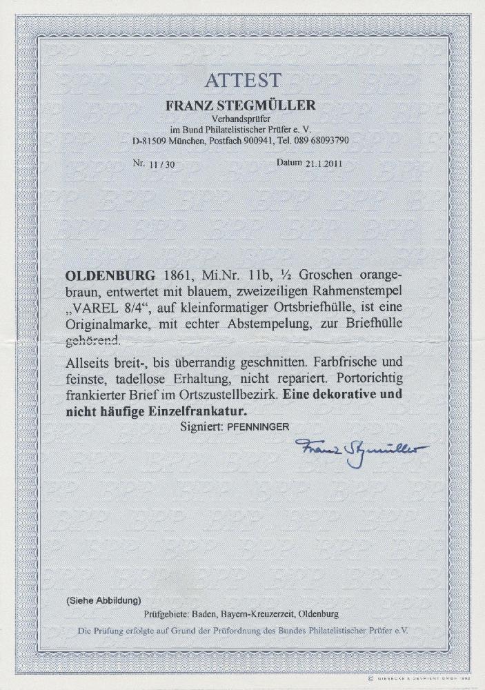 | Prüfgebiet: | Altdeutschland Oldenburg |