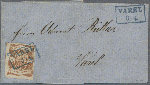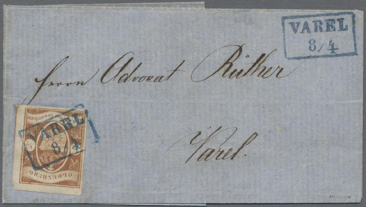 | Zusatzinformationen und Suchstichworte: | Christoph Gärtner 55. Auktion 20. - 24. Februar 2023 Los 5109 D Altdeutschland Oldenburg 1861, 1/2 Gr. dunkelbraun, farbfrisch, besonders breit- bis überrandig als Einzelfrankatur auf kleinformatigem Ortsbrief, blauer Ra 2 VAREL, portogerecht frankierter Brief im Ortszustellbezirk, sign. Pfenninger sowie Foto-Attest Stegmüller (2011): "Eine dekorative und nicht häufige Einzelfrankatur", Mi 3000,- Ausruf 600,00 EUR |