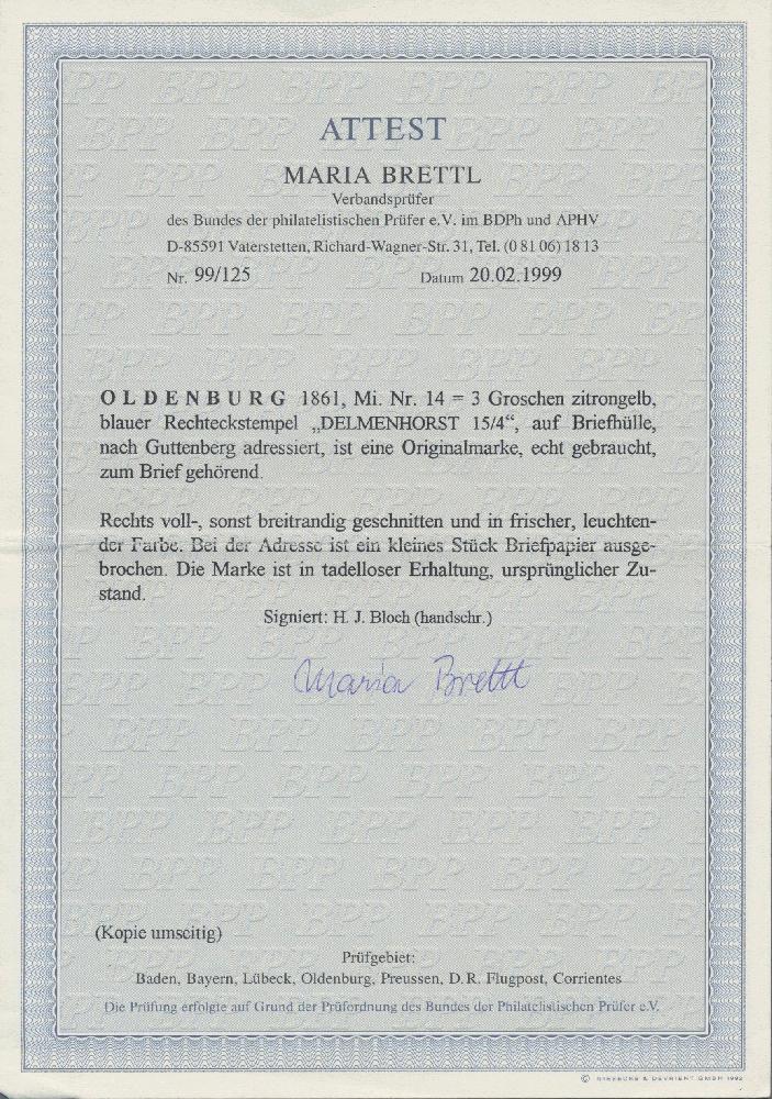 | Prüfer: | Brettl, Maria (BPP (Bund Philatelistischer Prüfer)) |