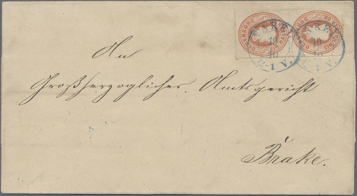 | Zusatzinformationen und Suchstichworte: | Christoph Gärtner 55. Auktion 20. - 24. Februar 2023 Los 5119 D Altdeutschland Oldenburg 1862, ½ Gr. rotorange im senkrechten Paar, tarifgerecht auf ursprünglich erhaltener Faltbriefhülle "VAREL 19 10" nach Brake mit rs. Ankunftstempel, ringsum tadellos durchstochen und sehr schön klar entwertet, Mehrfachfrankaturen der b-Nuance sind nicht häufig. Attest Stegmüller BPP Ausruf 650,00 EUR |