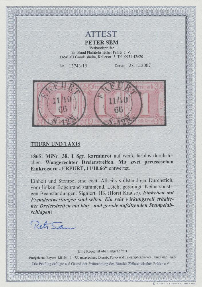 | Prüfer: | Sem, Peter (BPP (Bund Philatelistischer Prüfer)) |