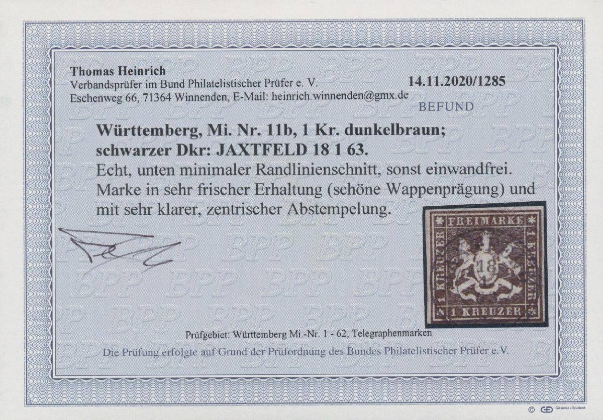 | Prüfer: | Heinrich, Thomas (BPP (Bund Philatelistischer Prüfer)) |