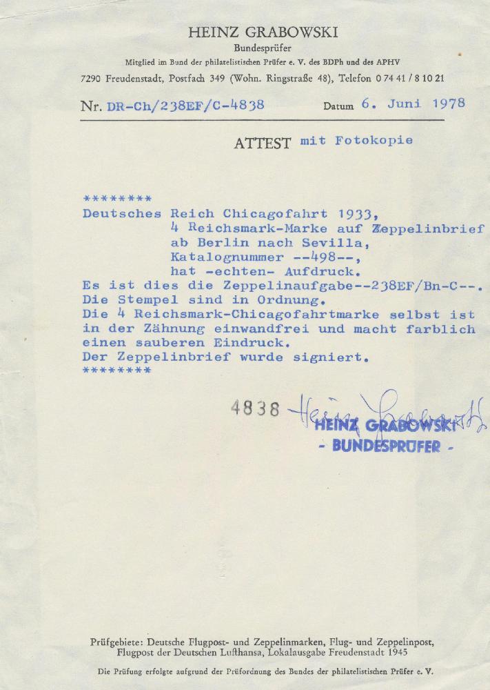 | Prüfgebiet: | Deutsches Reich Zeppelinpost (Belege) |