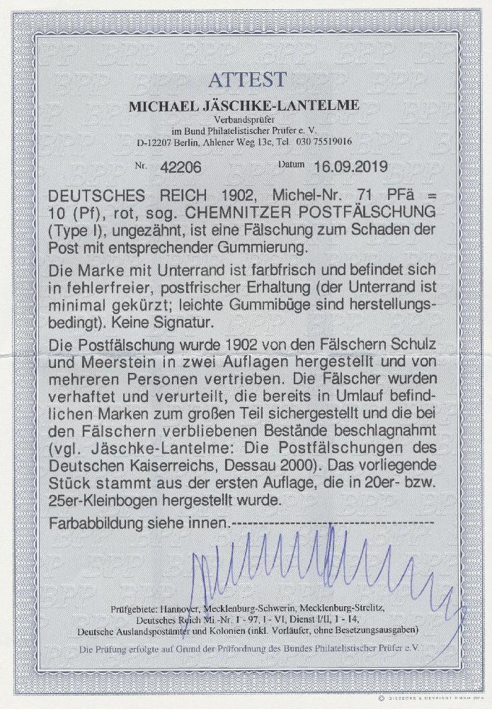 | Prüfgebiet: | Deutsches Reich 1871 - 1918 (Mi-Nr. 1 - 106) |