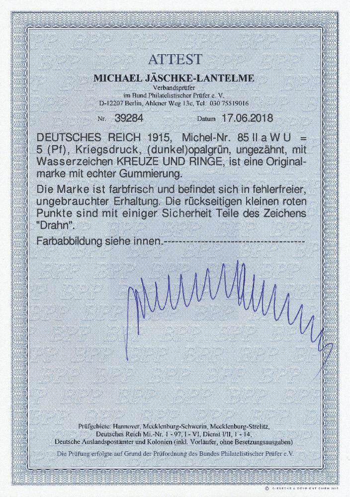 | Prüfer: | Jäschke-Lantelme, Michael (BPP (Bund Philatelistischer Prüfer)) |
