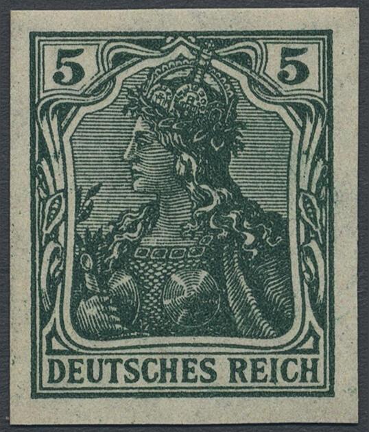 | Zusatzinformationen und Suchstichworte: | Christoph Gärtner 55. Auktion 20. - 24. Februar 2023 Los 5442 D Deutsches Reich, Germania mit WZ 1915, 5 Pfg. Germania mit Wasserzeichen Kreuze und Ringe ungebraucht, allseits breitrandiges ungezähntes Stück in einwandfreier Qualität, Fotoattest Jäschke-Lantelme BPP 06/2018, selten angebotene Marke, zumal in dieser Qualität! Mi -,- ! Ausruf 1.000,00 EUR |