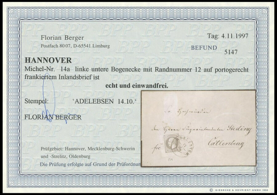 | Prüfer: | Berger, Florian (BPP (Bund Philatelistischer Prüfer)) |