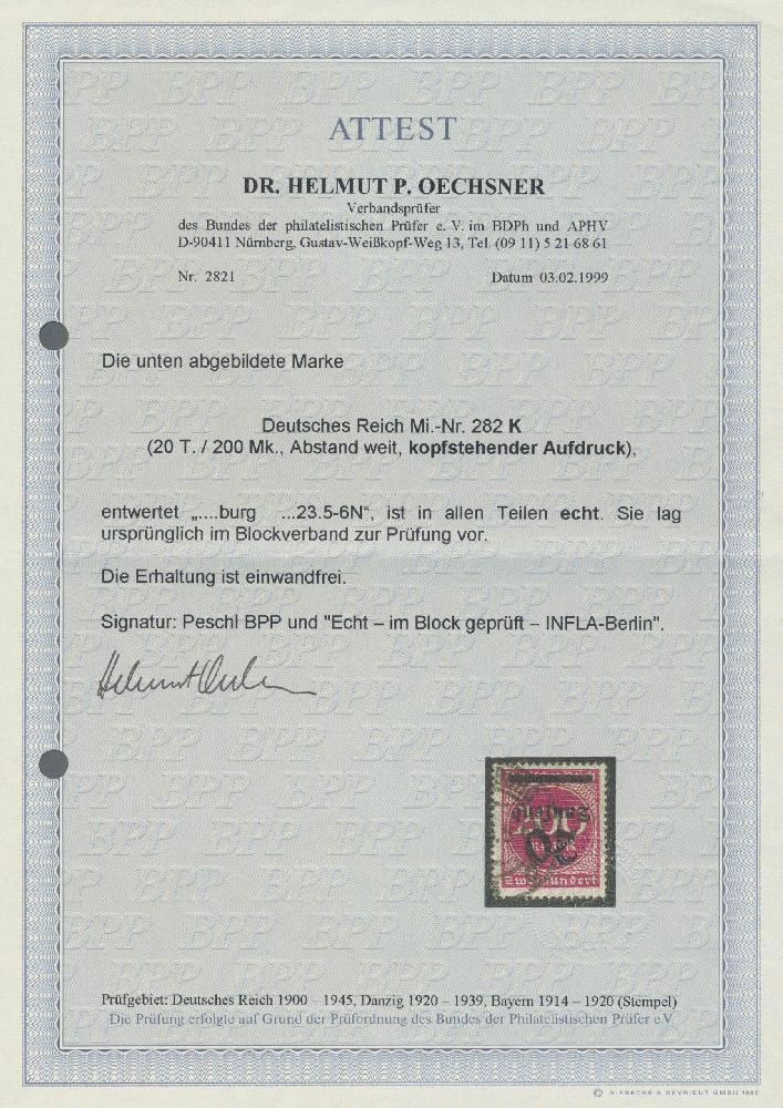 | Prüfer: | Oechsner, Helmut (BPP (Bund Philatelistischer Prüfer)) |
