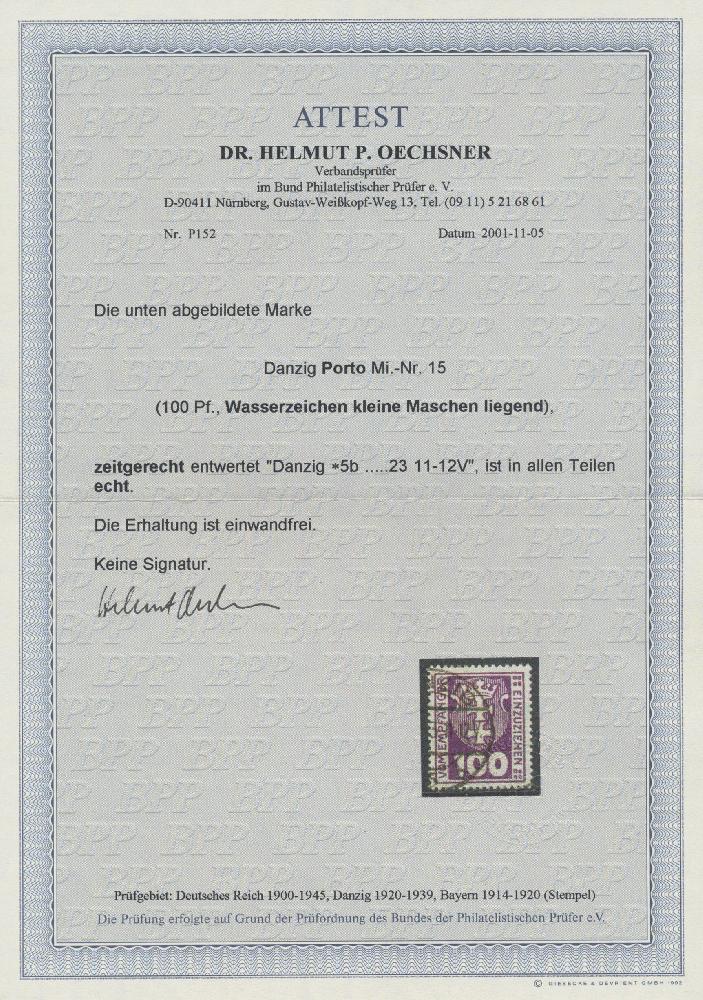 | Prüfgebiet: | Danzig Portomarken |