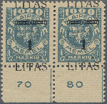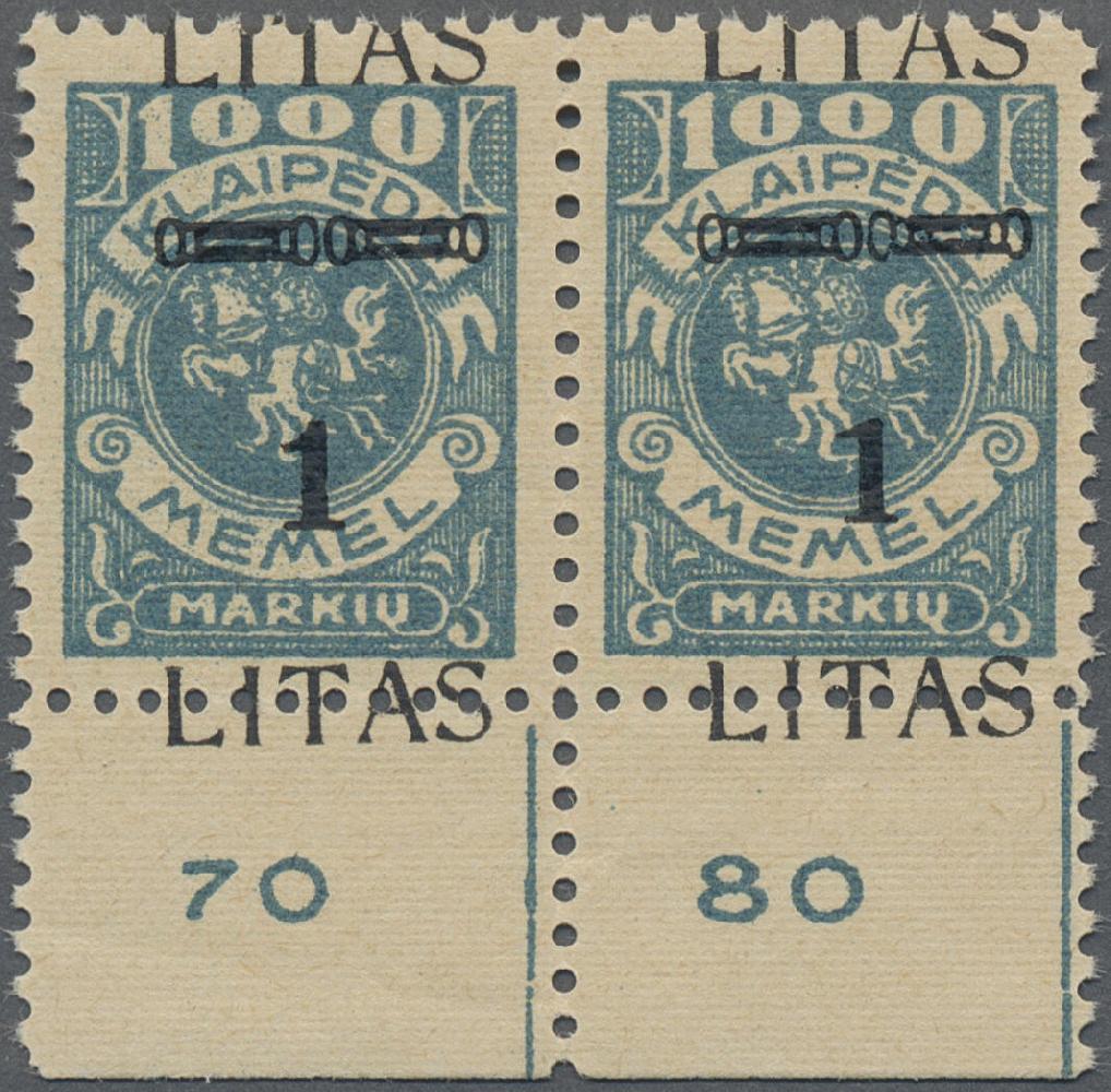 | Zusatzinformationen und Suchstichworte: | Christoph Gärtner 55. Auktion 20. - 24. Februar 2023 Los 6003 D Memel 1923, Freimarken 1 Lit. auf 1000 Mk., postfrisches waagerechtes Zusammendruckpaar vom Bogenunterrand der Typen II + III. Die Marken sind in einwandfreier Erhaltung, Fotoattest Dr. Petersen BPP Ausruf 250,00 EUR |