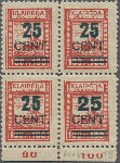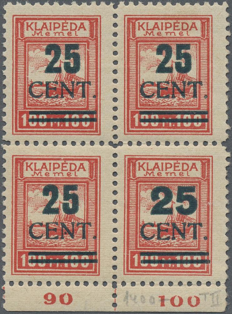 | Zusatzinformationen und Suchstichworte: | Christoph Gärtner 55. Auktion 20. - 24. Februar 2023 Los 6011 D Memel 1923, Freimarken 25 C. auf 100 M. mit Grünaufdruck im Viererblock mit Unterrandteil, dabei rechte untere Marke mit Aufdruck-Type II (Feld 100), postfrisch bzw. ungebraucht (rechte obere Marke) mit Originalgummi, sind echt. Die rechte untere Marke rechts mit kurzem Zahn, jeweils die linke bzw. rechte Zahnspitze des oberen Paares winzig stockig, sonst keine weiteren Mängel, einkleiner vorderseitiger Papierfehler rechts im Rahmen der rechten unteren Marke ist herstellungsbedingt und kein Mangel. Eine seltene Einheit! Fotoatteste Dr. Klein BPP und Huylmans BPP. (Mi€8.300,-+) Ausruf 700,00 EUR |
