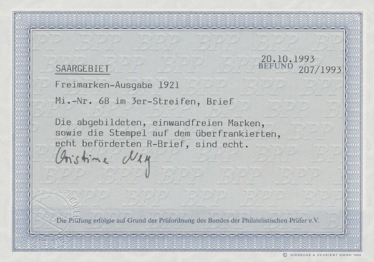 | Prüfgebiet: | Saargebiet (Mi-Nr. 1 - 205) |